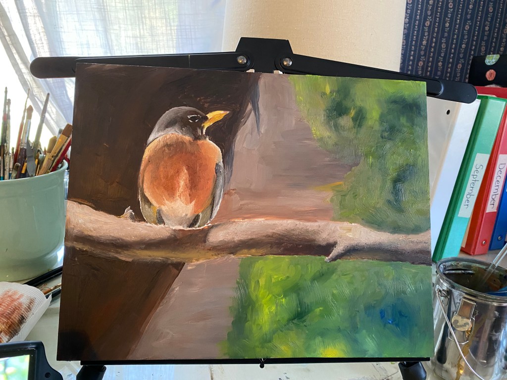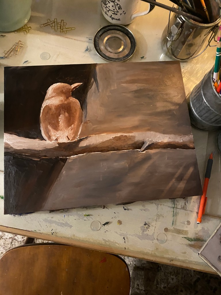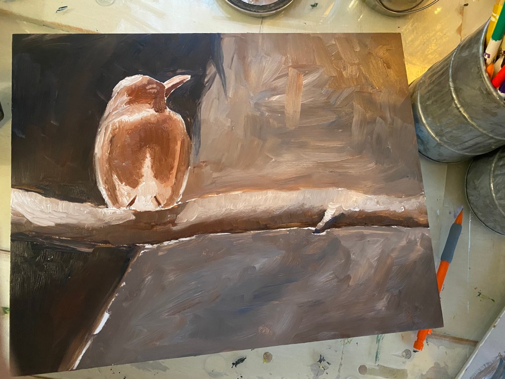 Here is a progression of this painting. I started with burnt sienna and did an underpainting of values first.