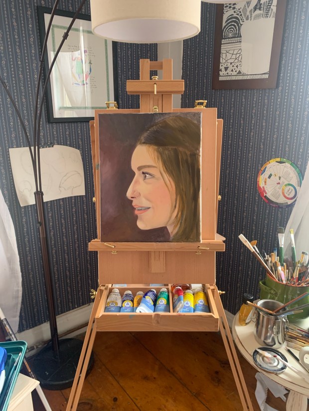 Here is a progression of this painting. I started with burnt sienna and did an underpainting of values first.