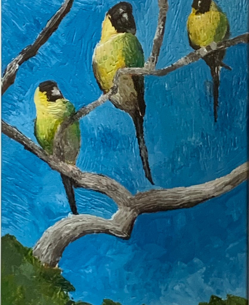 I havn’t learned or mastered details using the knife. The knife can be clunky, unlike the tiny bristles of a brush. for the tiniest details here I used a brush. Knives do come in different shapes and sizes which can be helpful. So if you want to try palette painting , buy a variety of knives.